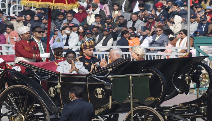 परेड की शुरुआत राष्ट्रपति द्रौपदी मुर्मू द्वारा पारंपरिक बग्गी में कर्तव्य पथ पर आगमन के साथ हुई। उनके साथ यूरोपीय संघ के शीर्ष नेता मौजूद थे। प्रधानमंत्री नरेंद्र मोदी, रक्षा मंत्री राजनाथ सिंह, तीनों सेनाओं के प्रमुख, विदेशी राजनयिक और वरिष्ठ अधिकारी भी इस ऐतिहासिक पल के साक्षी बने।