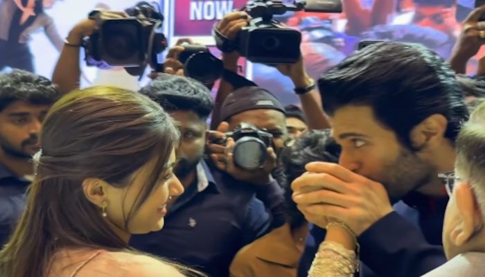 Vijay Deverakonda Kisses Rashmika Mandanna: साउथ की सुपरस्टार एक्ट्रेस रश्मिका मंदाना इन दिनों अपनी हालिया रिलीज फिल्म 'द गर्लफ्रेंड' की सफलता के कारण सुर्खियों में हैं। फिल्म को दर्शकों और क्रिटिक्स से बेहतरीन रिस्पॉन्स मिला है। इसी खुशी में मेकर्स ने सक्सेस पार्टी रखी, जिसमें रश्मिका के साथ एक्टर विजय देवरकोंडा भी शामिल हुए। इस मौके से जुड़ा एक वीडियो सोशल मीडिया पर वायरल हो गया है, जिसमें विजय को रश्मिका पर प्यार लुटाते देखा जा सकता है और फैन्स के बीच यह पल काफी चर्चा में है।