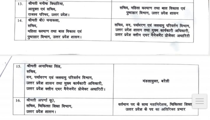 IAS Transfer Uttar Pradesh : उत्तर प्रदेश में प्रशासनिक महकमे में मंगलवार को एक अहम फेरबदल किया गया है, जिसके तहत राज्य सरकार ने 16 आईएएस अधिकारियों का तबादला किया है। इस सूची में कुछ बड़े नामों का भी समावेश है, जिनमें लखनऊ मंडल की पूर्व कमिश्नर आईएएस रोशन जैकब, पूर्व जिला अधिकारी बी चंद्रकला और किंजल सिंह का नाम प्रमुख रूप से शामिल है। यह बदलाव राज्य में विभिन्न प्रशासनिक कार्यों की गति को सुधारने और बेहतर प्रबंधन सुनिश्चित करने के उद्देश्य से किया गया है।